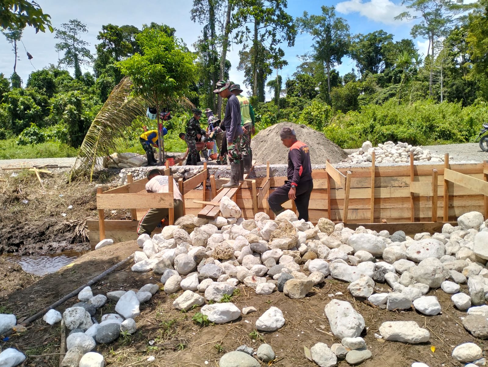 Pembangunan jembatan ini adalah salah satu langkah nyata TNI dalam mendukung program pemerintah daerah. Dalam pelaksanaannya, para prajurit TNI berkolaborasi dengan masyarakat, menjadikan semangat gotong royong sebagai landasan kuat dalam menyelesaikan proyek ini. Kerja sama yang harmonis antara TNI dan warga menciptakan sinergi yang mempercepat progres pembangunan.