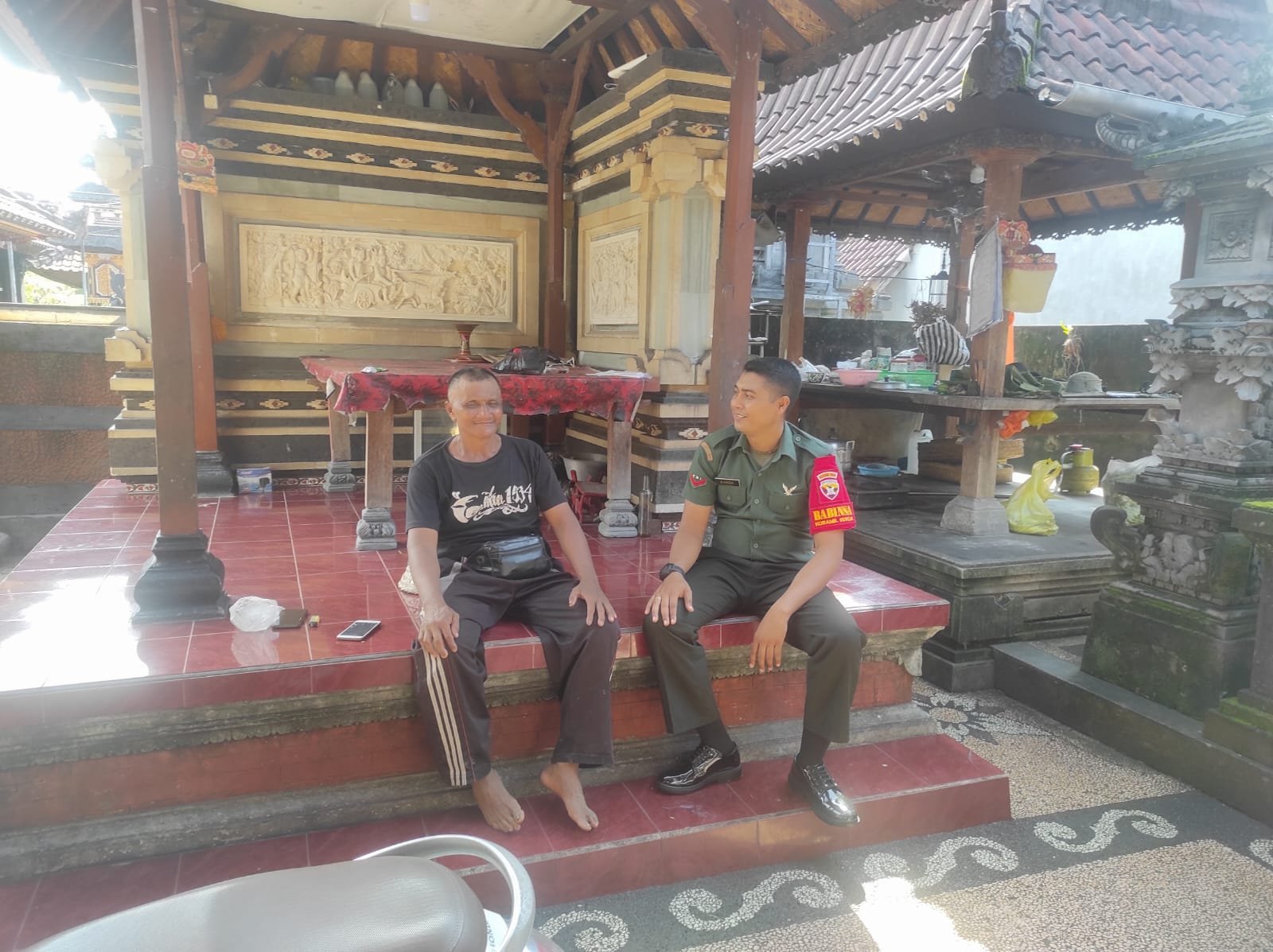 Klungkung,- Babinsa Kamasan Koramil 1610-01/Klungkung Kopda Kadek Agus melaksanakan kegiatan anjangsana dan komunikasi sosial dirumah Klian Subak Kacangdawa bapak I Wayan Sukarya, Sabtu ( 08/02/2025 ).