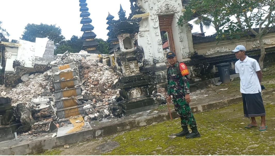 Kali ini musibah tersebut terjadi di Desa Batumadeg, dimana Gelung Kori Utama Pura Sad Kayangan Pusser Saab Desa Batumadeg roboh.