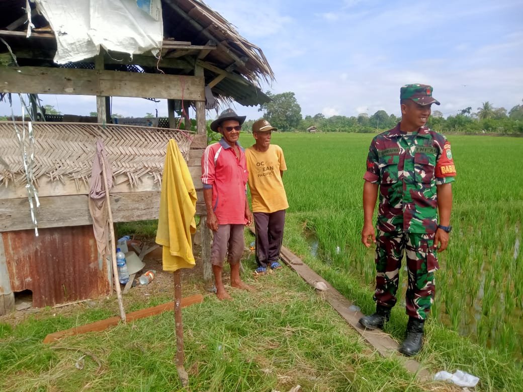ACEH JAYA – Koptu Tatang S, Bintara Pembina Desa (Babinsa) dari Koramil 05/Panga, Kodim 0114/Aceh Jaya, menunjukkan kepeduliannya terhadap sektor pertanian dengan melaksanakan pemantauan langsung terhadap kendala yang dihadapi petani di Desa Tuwi Kareung, Kecamatan Panga. Pemantauan yang dilakukan pada tanaman padi yang berusia satu bulan ini fokus pada penanganan serangan hama ulat yang mengancam pertumbuhan tanaman kelompok tani (Poktan) Muara Tenarom.