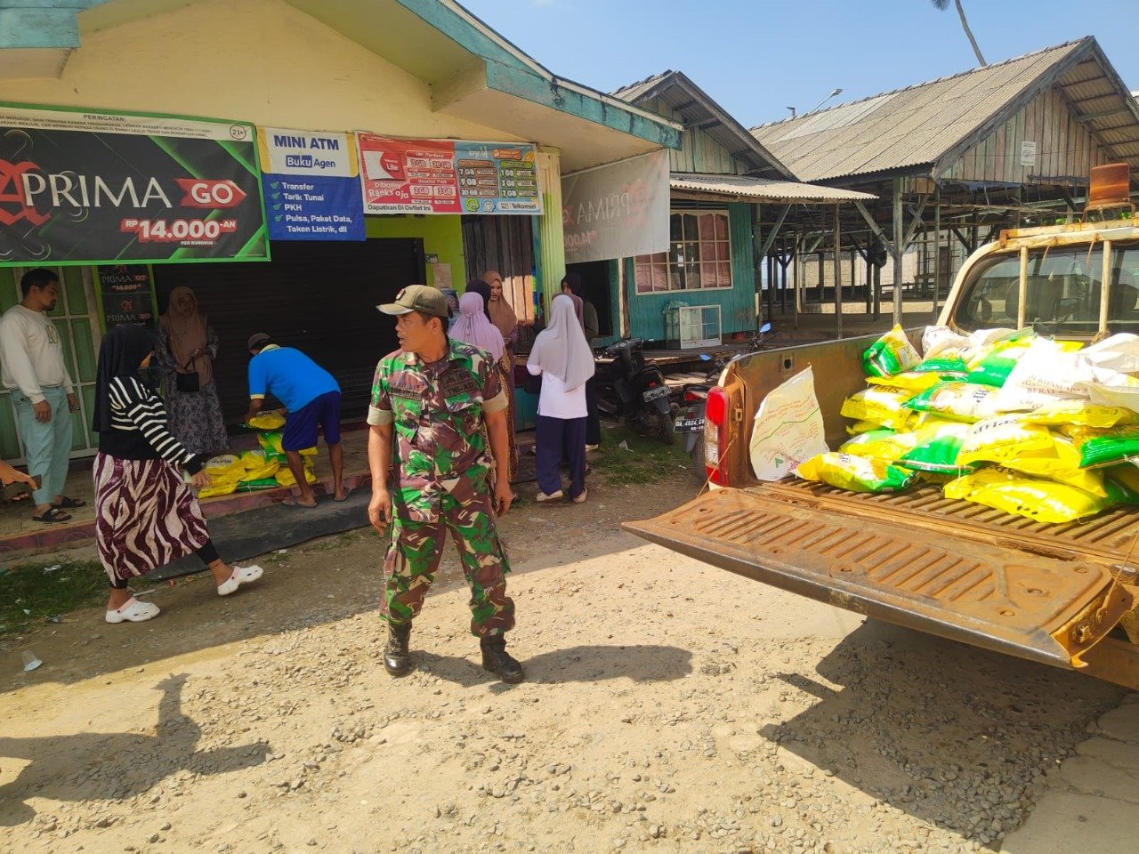 Koramil 1004-01/Pulau Sebuku Distribusikan Beras SPHP Guna Stabilkan Harga Pangan Beras Melalui Gerakan Pasar Murah