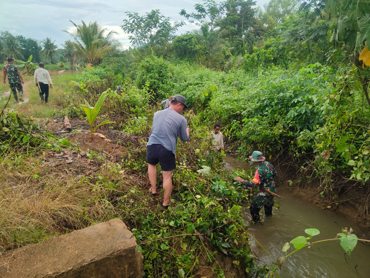 Kegiatan tersebut melibatkan personel Koramil bersama masyarakat setempat yang bergotong-royong membersihkan sampah, lumpur, dan rerumputan yang menghambat aliran air di sungai serta saluran irigasi pertanian. Langkah ini dilakukan untuk mencegah terjadinya penyumbatan dan genangan air yang dapat mengganggu aktivitas pertanian masyarakat.