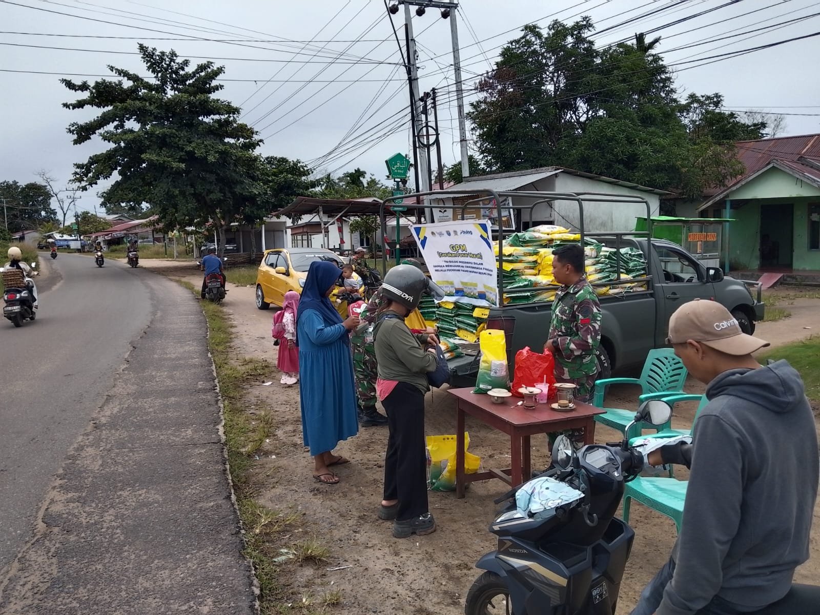 Ketapang – Anggota Koramil 13/Matan Hilir Selatan, jajaran Kodim 1203/Ketapang, menggelar kegiatan pasar murah dengan memasarkan beras Stabilisasi Pasokan dan Harga Pangan (SPHP).