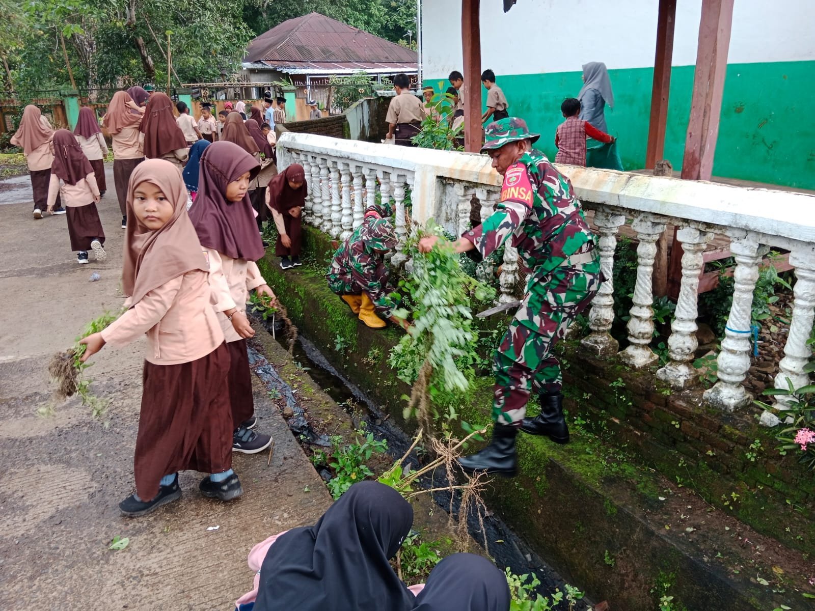 TAKALAR – Personel Koramil 1426-01/Polut Kodim 1426/Takalar, mengajak Siswa Siswi SD Inpres No 206 Palleko melaksanakan kegiatan kerja bakti bersihkan saluran air dan bahu jalan yang banyak ditumbuhi rumput liar di Kelurahan Palleko, Kecamatan Polongbangkeng Utara Kabupaten Takalar. Sabtu, 25/01/2025.