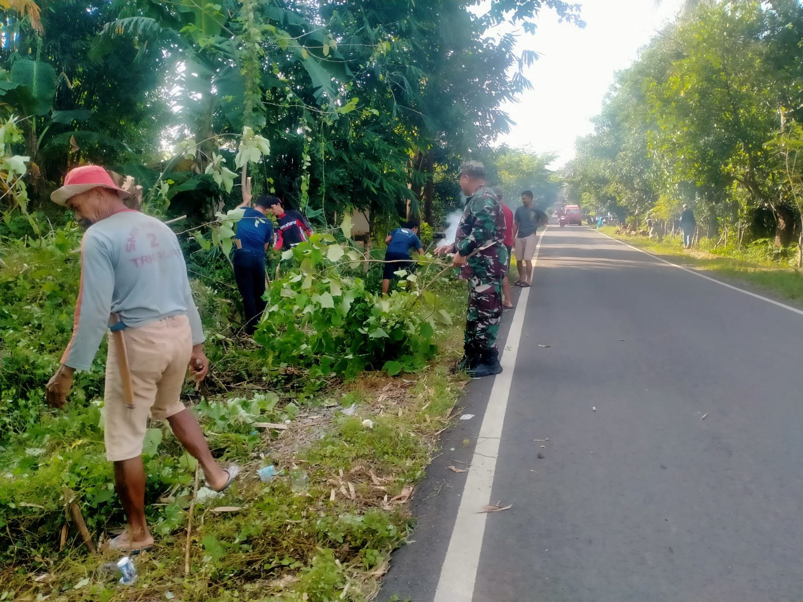“Selain kami membersihkan sampah, lumpur dan rumput liar di selokan ini, kami juga merapihkan pohon pohon yang berada di kanan kiri selokan agar terlihat rapih dan bersih, “terang Danramil.