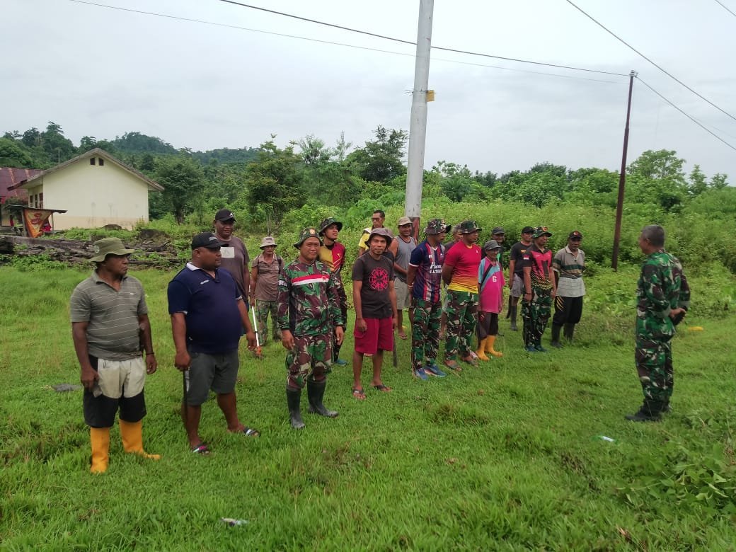 Kegiatan dipimpin Batituud Koramil 1508-04/Malifut, Serma Hans Tobaru, dan diikuti personel Koramil, Kepala Desa beserta staf, serta masyarakat setempat. Seluruh peserta terlibat aktif membersihkan area, menata lahan, serta memastikan lokasi tersebut siap memasuki tahap pembangunan.