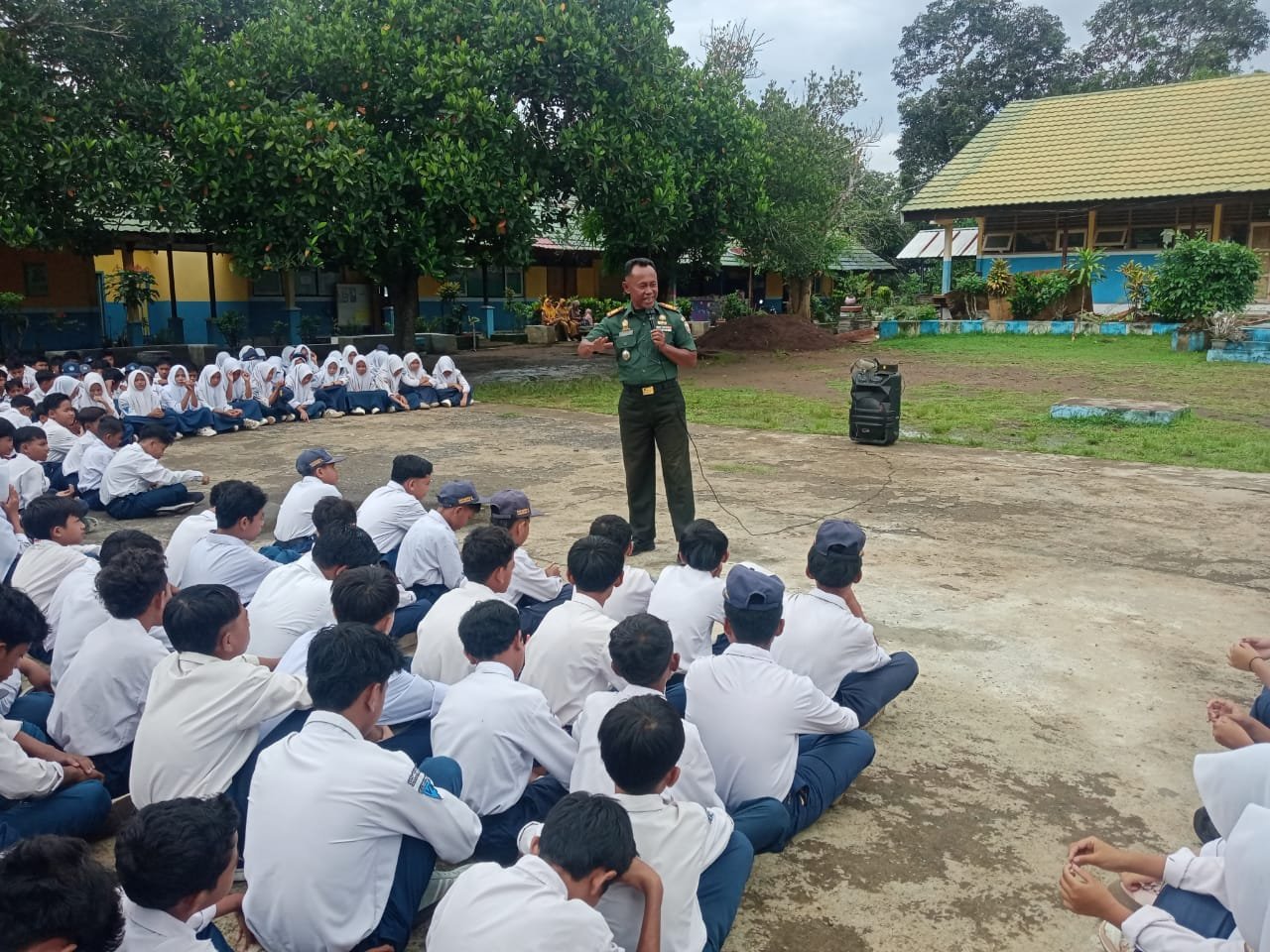 Kegiatan tersebut merupakan bagian dari program pembinaan teritorial TNI AD dalam menanamkan nilai-nilai kebangsaan kepada generasi muda. Para siswa tampak antusias mengikuti kegiatan sejak awal hingga akhir, yang berlangsung di aula sekolah dengan suasana edukatif dan interaktif.