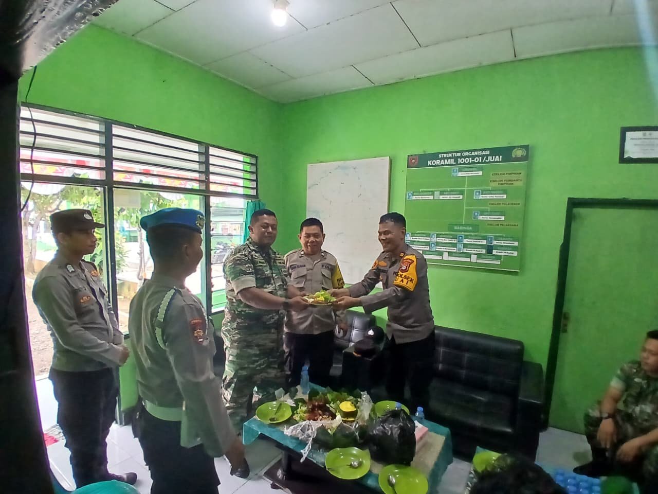 HULU SUNGAI UTARA – Seluruh Koramil jajaran Kodim 1001/Hulu Sungai Utara – Balangan (HSU-BLG) mendapat kejutan istimewa berupa ucapan selamat Hari Ulang Tahun (HUT) ke-80 Tentara Nasional Indonesia (TNI) dari berbagai unsur Forkopimca, baik dari pihak kecamatan maupun Polsek di wilayah masing-masing, Senin (7/10/2025).