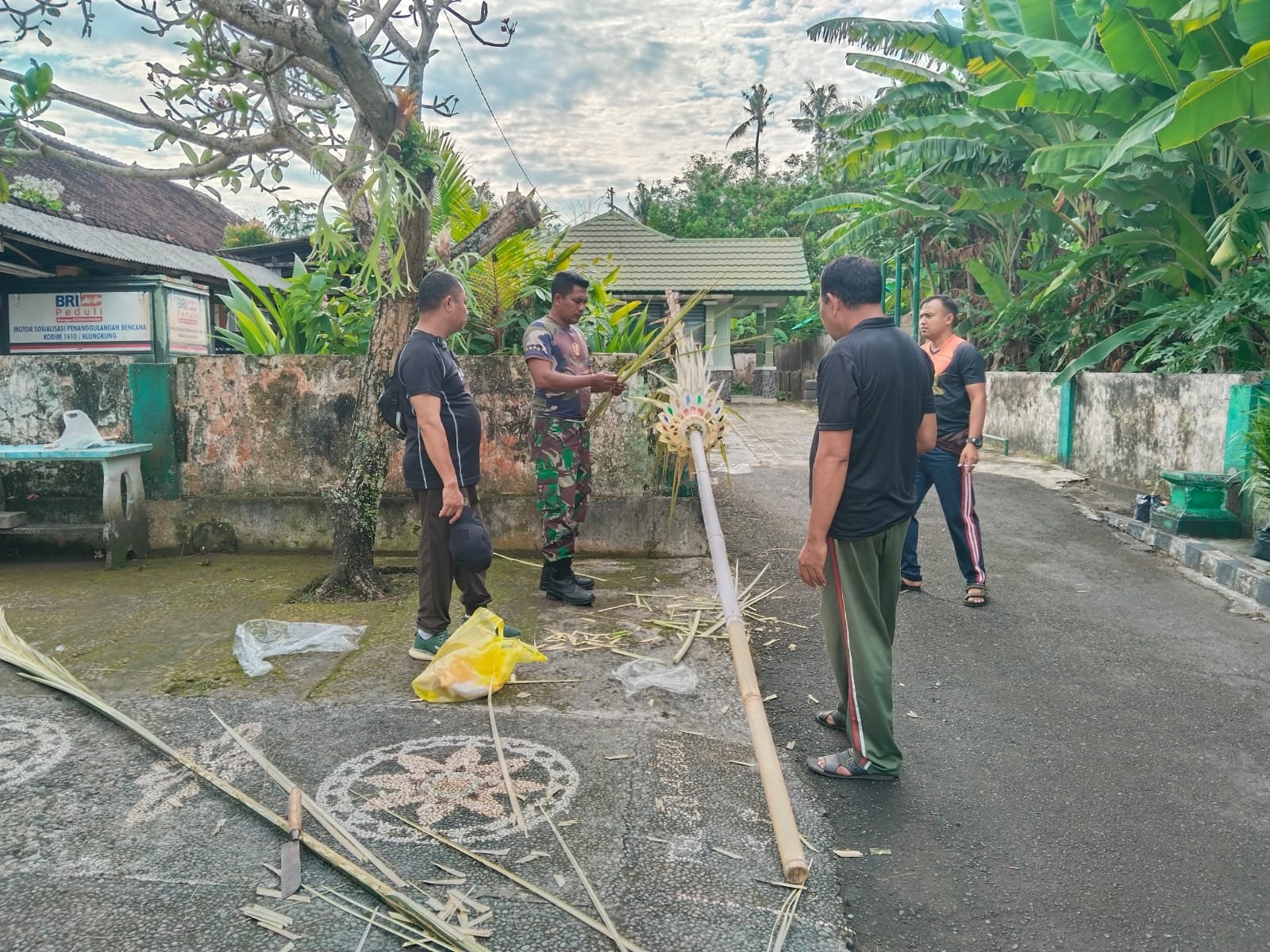 Disela gotong royong, Pjs Danramil 1610-01/Klungkung Lettu Inf I Nyoman Surata menyampaikan bahwa untuk piodalan di Pura Koramil ini akan dilaksanakan besok yang bertepatan dengan hari suci Purnama