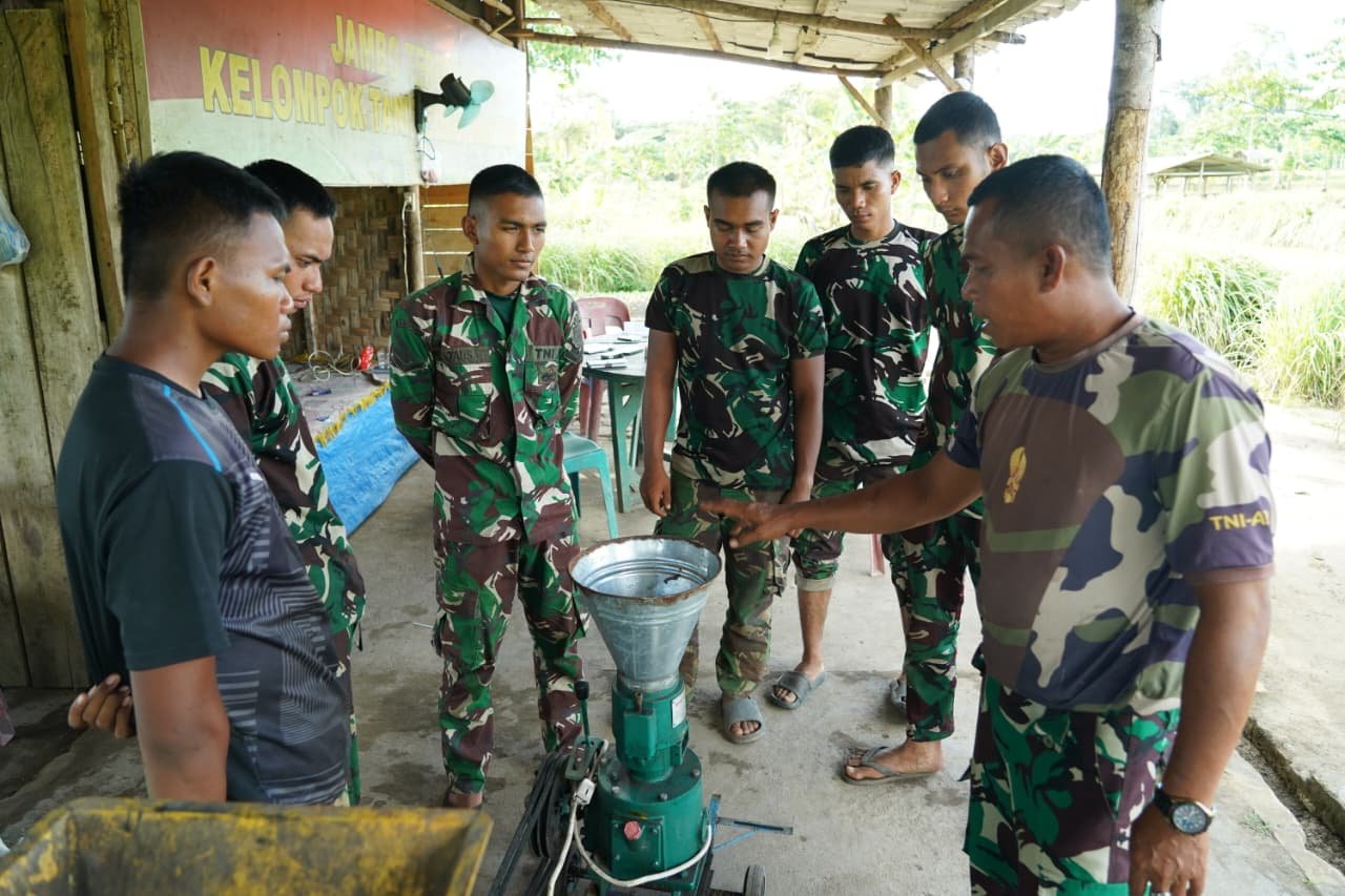 Meulaboh, 17 September 2025 – Dalam rangka mendukung program ketahanan pangan TNI AD, Korem 012/Teuku Umar memberikan pelatihan pembuatan pakan ternak berupa pelet ikan dan ayam kepada personel Yonif 856/SBS. Kegiatan ini dilaksanakan sebagai bagian dari upaya peningkatan kemampuan teknis prajurit di bidang pertanian dan peternakan mandiri.