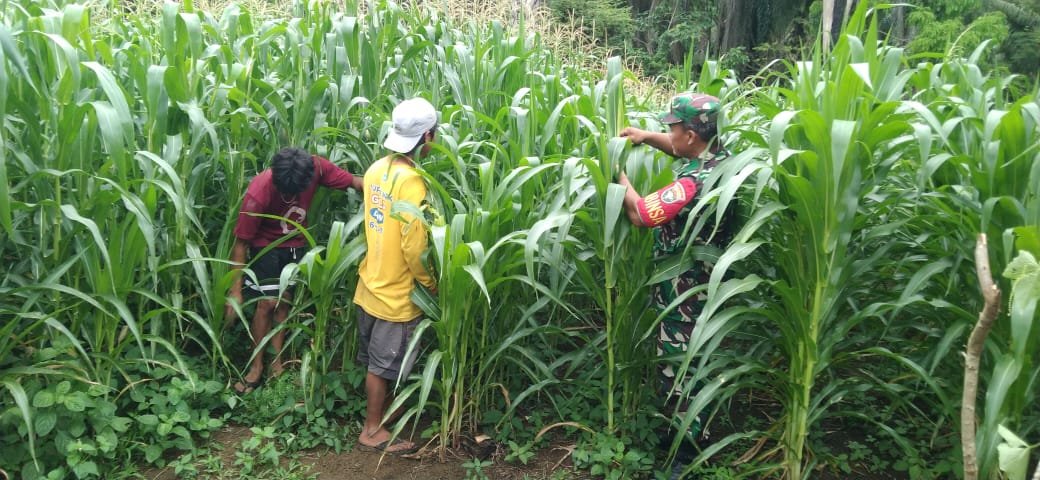 Dalam kegiatan tersebut, Babinsa bersama warga turun langsung ke kebun jagung untuk melihat kondisi tanaman, memastikan pertumbuhan berjalan dengan baik, serta mengecek kerapatan dan keseragaman tanaman. Kegiatan ini dilakukan secara gotong royong sebagai upaya menjaga kualitas tanaman hingga memasuki masa panen.