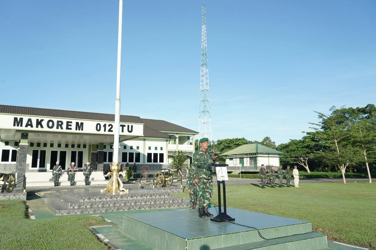 Korem 012/TU Gelar Upacara Bendera Bulanan , Dandenpal IM/2 MBO Sampaikan Amanat Panglima TNI