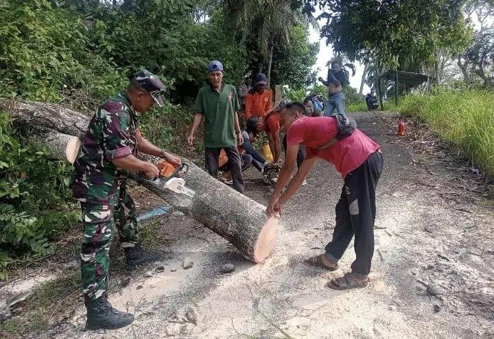 Korem 012/TU : Respons Cepat, Babinsa Koramil 02/Sukakarya Ikut Serta Pembersihan Pohon Tumbang yang Menghambat Akses Jalan Masyarakat