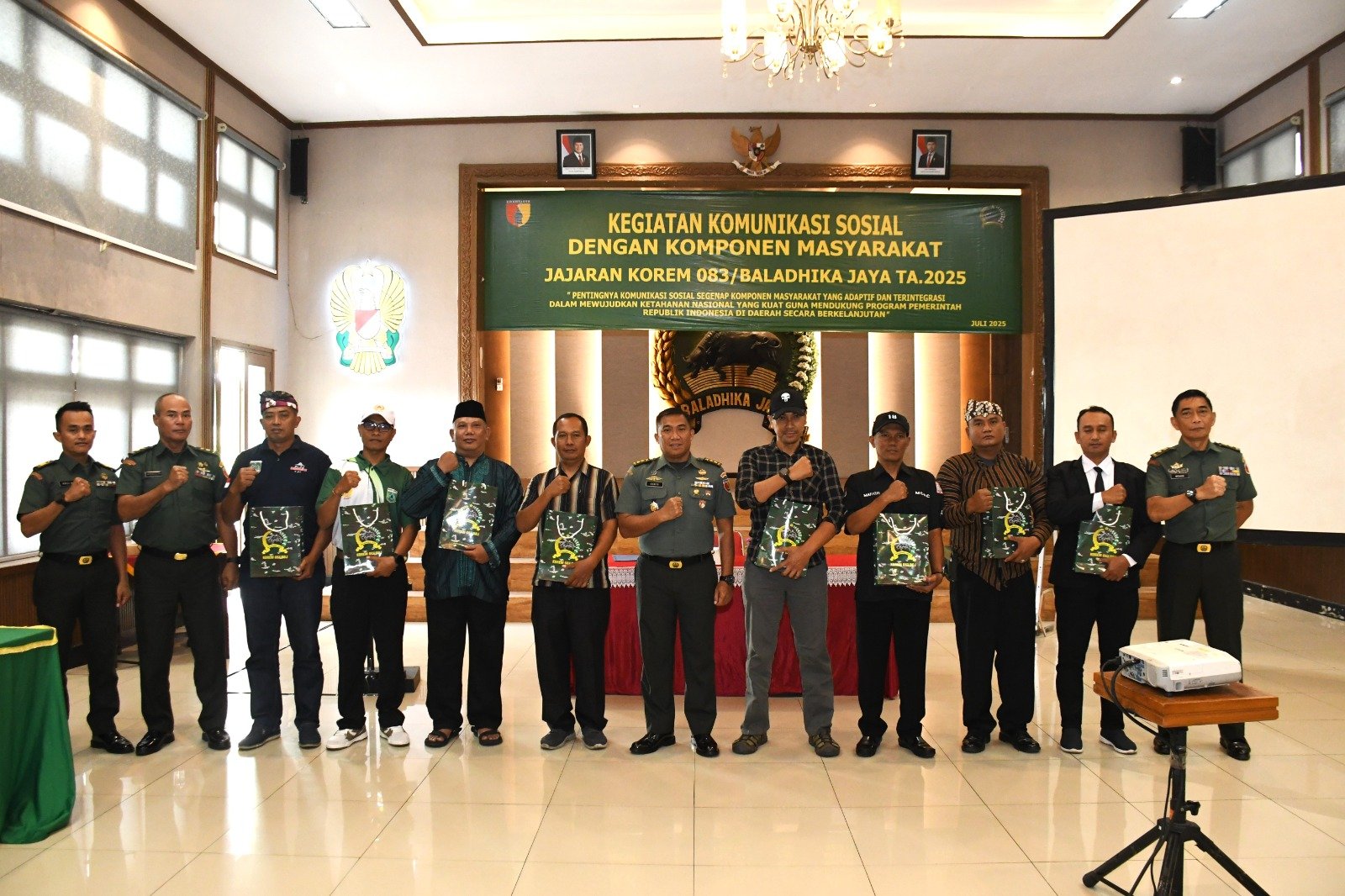 Kepala Staf Korem 083/Baladhika Jaya, Letkol Inf Rahmad Cahyo Dinarso, S.Hub.Int dalam sambutannya menyampaikan bahwa kegiatan ini merupakan wujud nyata kepedulian TNI terhadap upaya membangun komunikasi yang sehat dan produktif dengan masyarakat. Melalui Komsos, diharapkan akan tercipta pemahaman yang sama tentang pentingnya persatuan, kesatuan, dan peran aktif seluruh elemen bangsa dalam menjaga stabilitas keamanan serta mendukung pembangunan nasional.