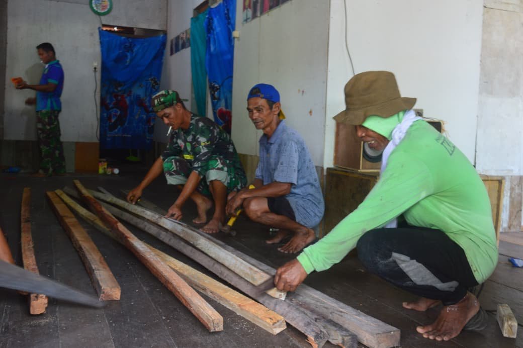 Pangkalan Banteng – Program TMMD Ke-128 Kodim 1014/Pbn terus melanjutkan rangkaian kegiatan pembangunan fisik di Desa Sungai Hijau, Kecamatan Pangkalan Banteng. Di antara kegiatannya, pemilahan bahan balok kayu dilakukan untuk keperluan sekat dinding rumah tidak layak huni (RTLH) pada hari Minggu (26/04/2026).
