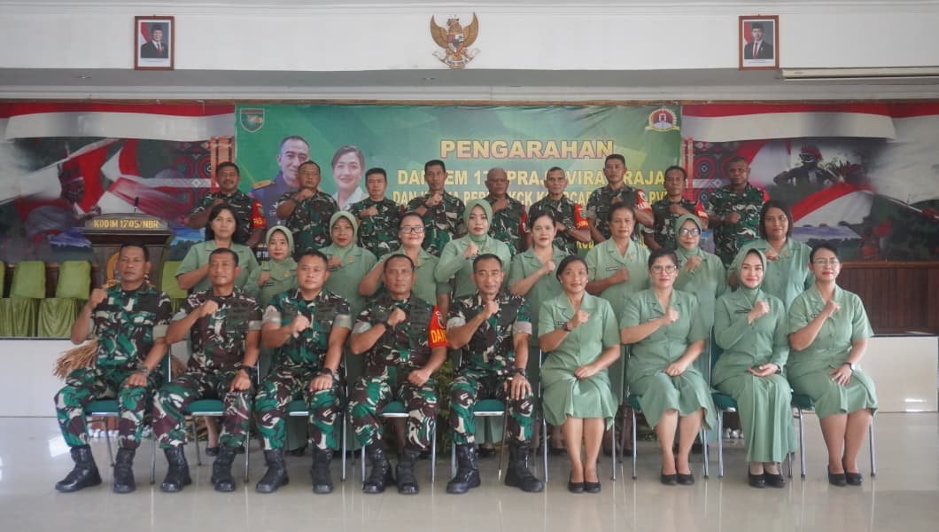 Nabire – Dalam rangka melaksanakan kunjungan kerja yang pertama kalinya di Kodim 1705/Nabire Komandan Korem 173/ Praja Vira Braja (Brigjen TNI I Ketut Mertha Gunarda) yang didampingi (Ny. I Made Rai I Ketut M.G) Ketua Persit Koorcab Rem 173/PVB yang disambut langsung oleh Dandim 1705/Nabire beserta Ketua Persit KCK Cab XX Kodim 1705 Nabire bertempat di Makodim 1705/Nabire Jl. Ahmad Yani, Kelurahan karang Tumaritis, Distrik Nabire, Kabupaten Nabire, Provinsi Papua Tengah.