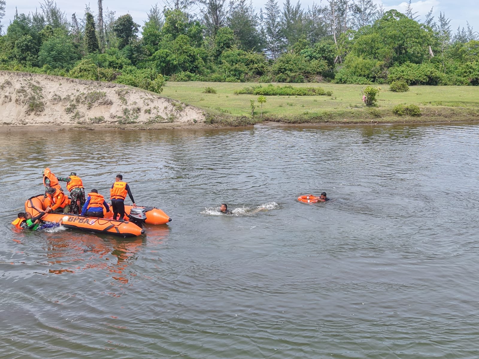 Aceh Selatan – Latihan Lapang Penanggulangan Bencana Alam yang digelar Kodim 0107/Aceh Selatan memasuki hari kedua dengan skenario evakuasi banjir di wilayah Desa Pasie Asahan kec.pasie Raja Kab. Aceh Selatan , Jumat (19/9/2025)