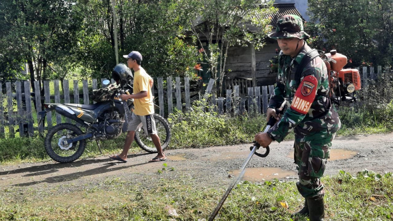 Kegiatan tersebut difokuskan pada pemotongan rumput liar yang telah tumbuh tinggi di sepanjang jalan masuk desa. Dalam aksi gotong royong ini, Sertu Dedy Hukom turut langsung terlibat dengan menggunakan mesin pemotong rumput. Ia terlihat menggendong mesin pemotong sambil memaras rumput di sisi kiri jalan.