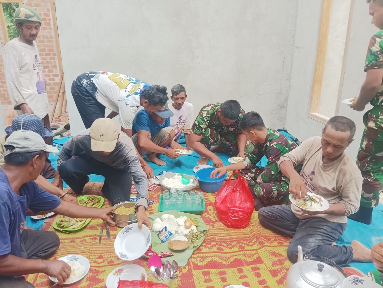 Way Kanan, Rabu (22/10/2025) – Sebagai wujud kebersamaan dan kekeluargaan, Satgas TMMD ke-126 Kodim 0427/Way Kanan melaksanakan kegiatan makan bersama warga Kampung Sriwijaya di rumah Bapak Parnen, salah satu penerima bantuan program Rumah Tidak Layak Huni (RTLH).