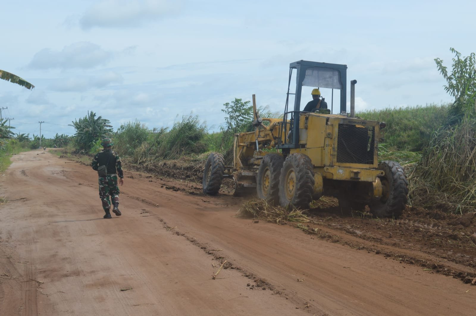 ” Kami sebagai anggota yang tergabung dalam TMMD ini terus selalu melaksanakan pengawasan dan mengarahkan alat berat exavator dan mengejar target penyelesaian dengan baik dengan hasil yang maksimal,” ungkap Praka Deby yang mendampingi operator saat mengoperasikan Alat berat Greder.