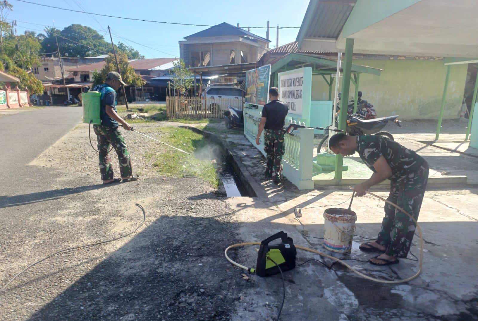 Manfaatkan Hari Libur, Koramil 06/Kluet Utara Laksanakan Pembersihan Pangkalan dan Perumahan Dinas