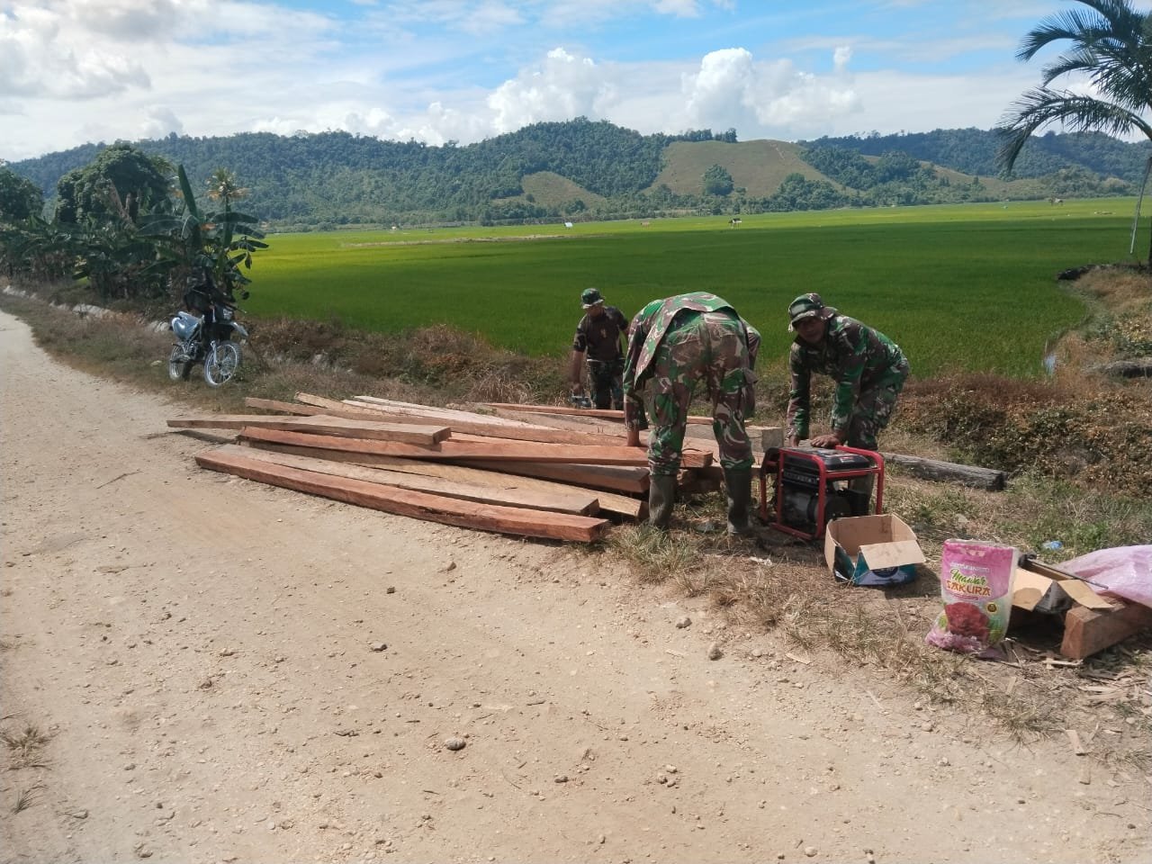 Konawe, 2 Agustus 2025 – Progres pembangunan jembatan dalam program TMMD ke-125 Kodim 1417/Kendari terus menunjukkan perkembangan. Pada Sabtu pagi ini (2/8), material berupa kayu mulai didistribusikan ke titik sasaran di Desa Nekudu, Kecamatan Asinua, Kabupaten Konawe, untuk mendukung kelanjutan pekerjaan fisik.
