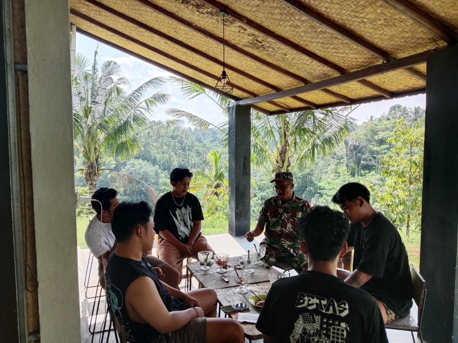 Bangli – Dalam rangka untuk membina hubungan baik dengan seluruh lapisan masyarakat dan mengajak untuk selalu menjaga kesehatan serta monitoring perkembangan wilayah terkait keamanan dan ketertiban masyarakat Babinsa Desa Peninjoan Koramil 03/Tembuku Kodim 1626/Bangli Sertu I Made Suarnika melaksanakan pembinaan teritorial melalui Komunikasi Sosial (Komsos) dengan warga bertempat di Desa Peninjoan Kecamatan Tembuku Kabupaten Bangli. selasa (06/05/25)