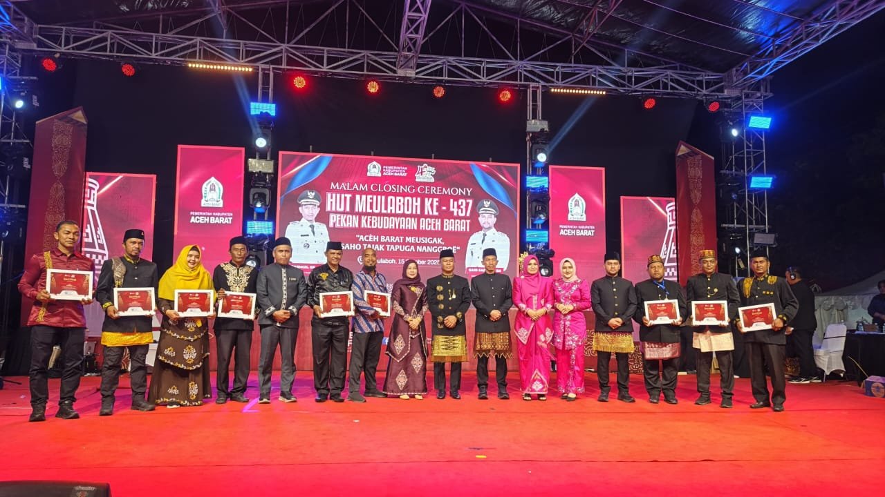Acara penutupan PKAB turut dimeriahkan oleh penampilan Rafli Kande dan Band Apache, serta penyerahan penghargaan kepada para juara stand dan tokoh-tokoh yang berkontribusi dalam pembangunan Kabupaten Aceh Barat.(0105).