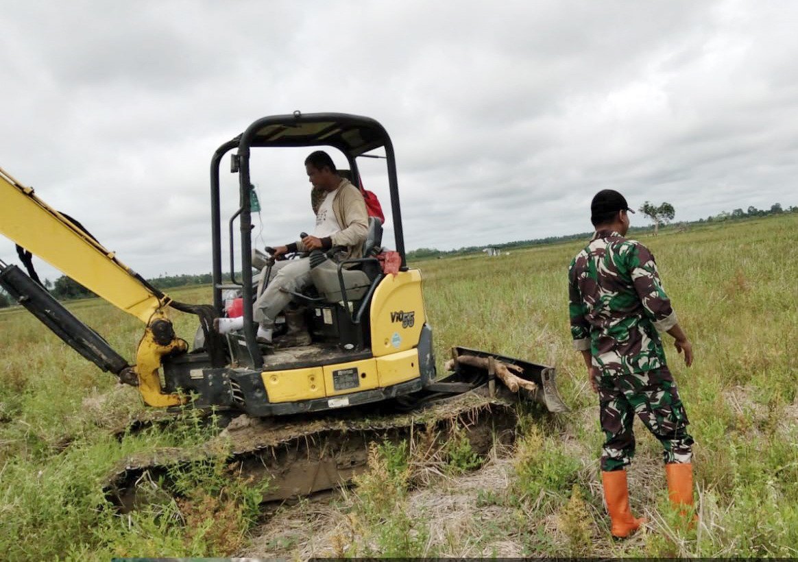 Terpantau disalah satu Lokasi pertanian di Desa Simpur Kecamatan Simpur Kabupaten HSS Sertu Sujiono personiel Babinsa bersama operator alat berat sedang menyelesaikan salah satu tahapan penyiapan lahan pertanian, dengan harapan bisa cepat rampung dan bisa dengan cepat pula dimanfaatkan oleh para petani yang merupakan warga binaan Babinsa