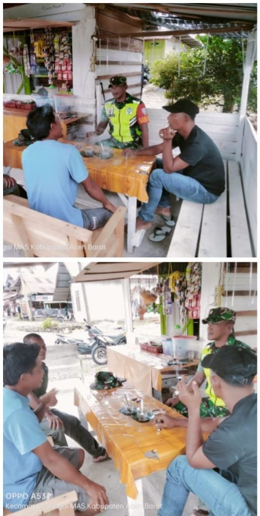 ACEH BARAT – Menyambut Tahun Baru, Serda Surya Darma, Babinsa Koramil 01/Sungaimas Kodim 0105/Abar, mengajak warga binaan untuk tetap menjaga keamanan dan ketertiban dalam menyambut Tahun Baru dengan cara melaksanakan komunikasi sosial (komsos) di Desa Geudong, Kecamatan Sungaimas, Rabu (31/12/2025).