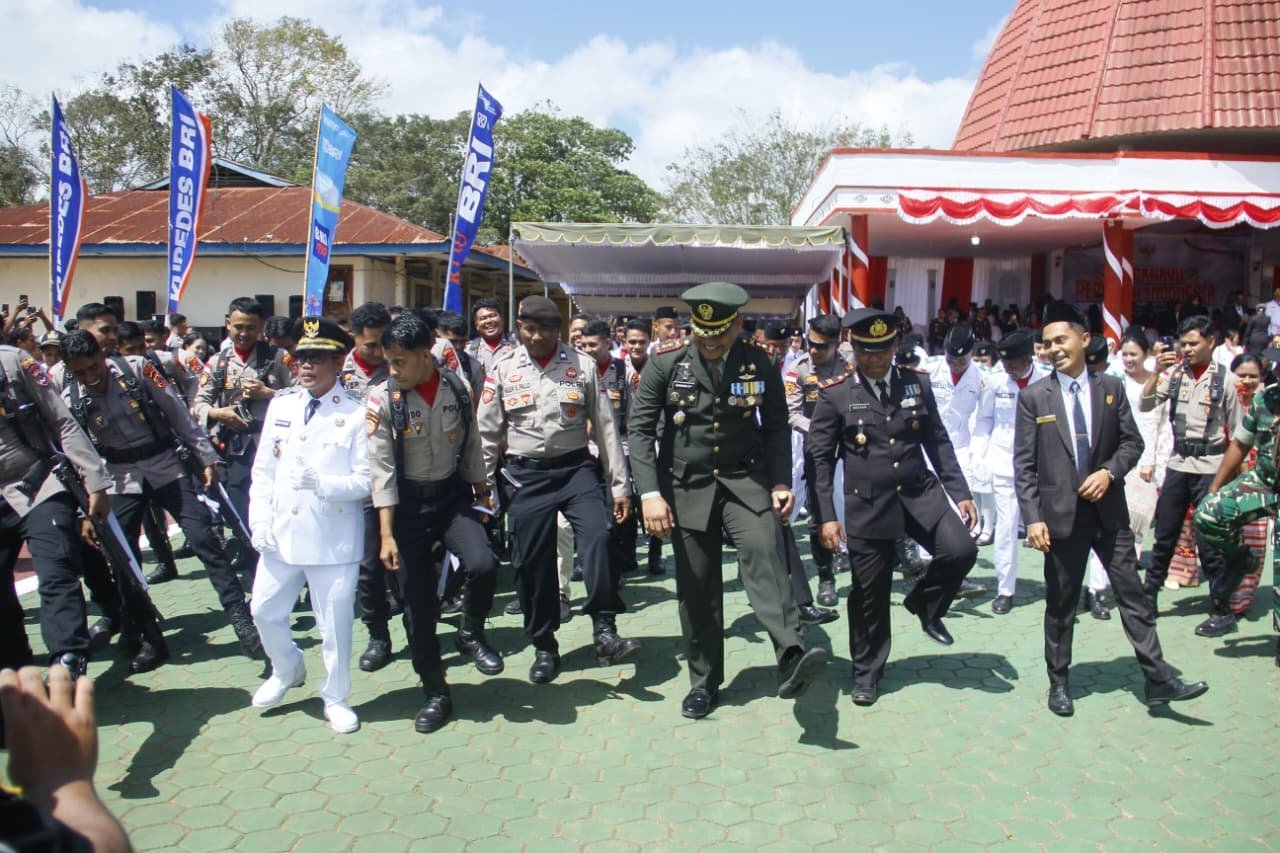 TTS – Dandim 1621/TTS Letkol Inf. Gunawan Budhi Prasetyo, Wakil Bupati Jhony Army Konai Ketua DPRD Mordekai Liu, dan Wakapolres Kompol Ibrahim, Ketua Persit KCK Cab. XX Dim 1621/TTS Ny. Sari Gunawan ikut goyang Jai bersama masyarakat usai upacara HUT RI ke- 80.