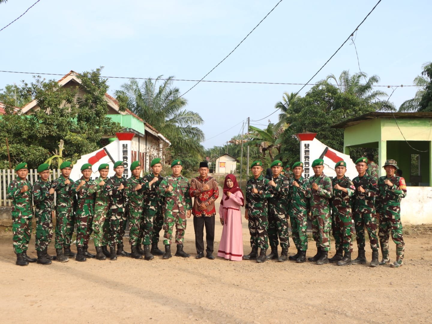 Banyuasin – Kebersamaan antara anggota Satgas TMMD ke-127 Kodim 0430/Banyuasin dengan masyarakat Desa Wonosari, Kecamatan Pulau Rimau, Kabupaten Banyuasin semakin terasa hangat. Hal tersebut terlihat dari momen foto bersama antara anggota Satgas dengan tuan rumah tempat mereka tinggal selama pelaksanaan TMMD.