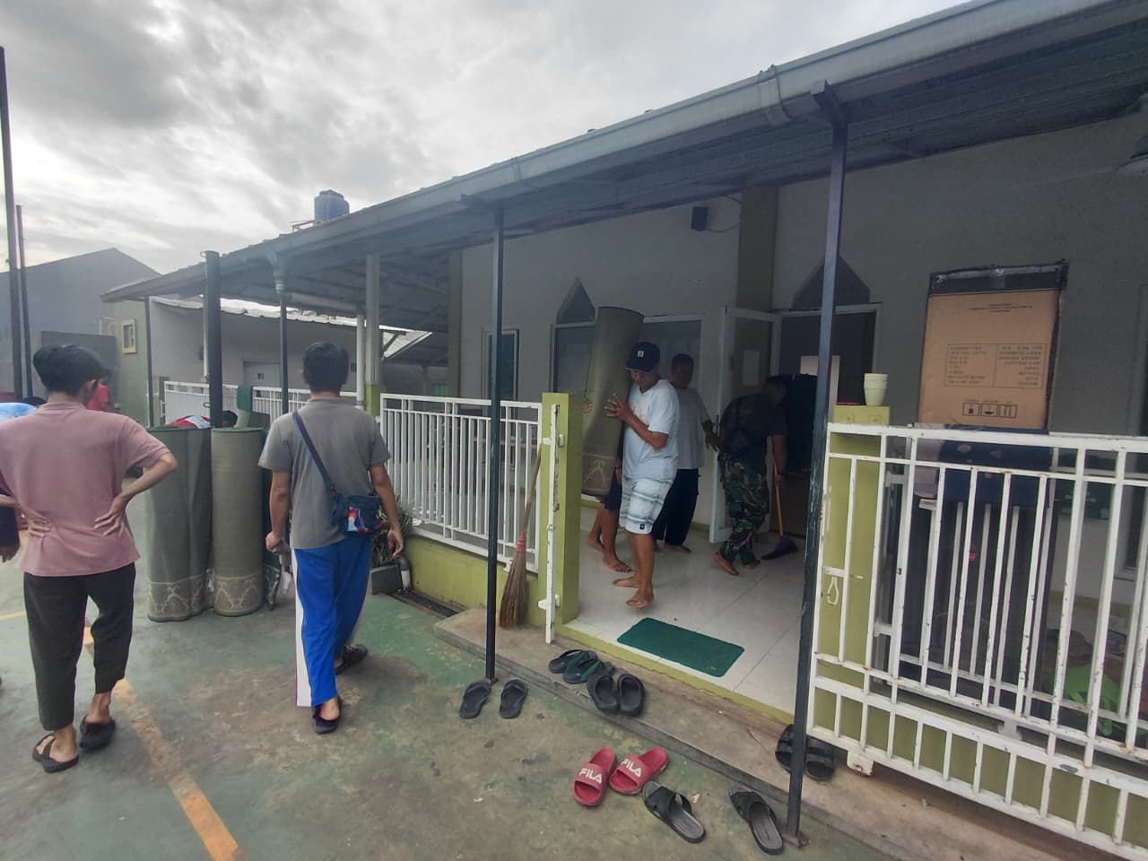 Personel gabungan bersama masyarakat membersihkan area dalam dan luar mushala agar lebih nyaman digunakan untuk beribadah.
