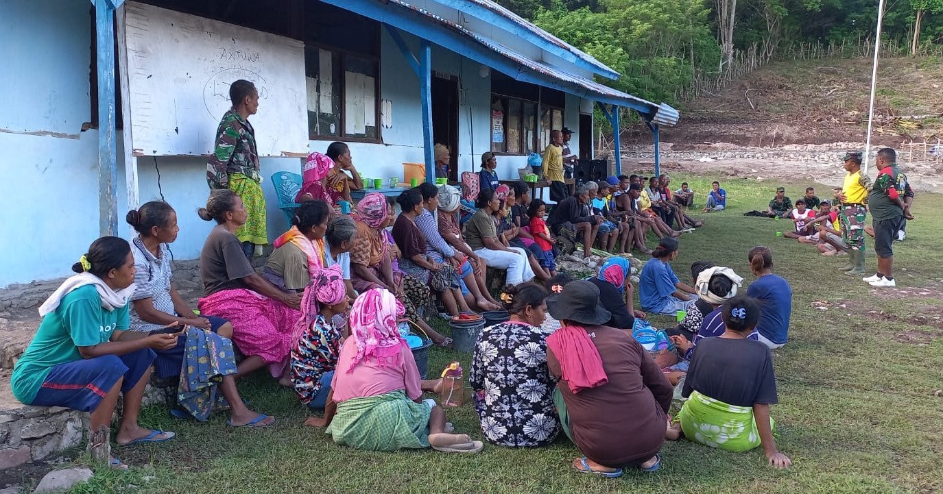 TTU,– Setelah seharian bergotong royong membangun SDN Lanaus dalam program TMMD ke-123 Kodim 1618/TTU, warga Desa Lanaus dan personel TNI memanfaatkan waktu istirahat mereka untuk bersantai bersama. Bertempat di halaman sekolah, suasana keakraban begitu terasa saat mereka duduk bersama, melepas lelah sambil berbincang santai.