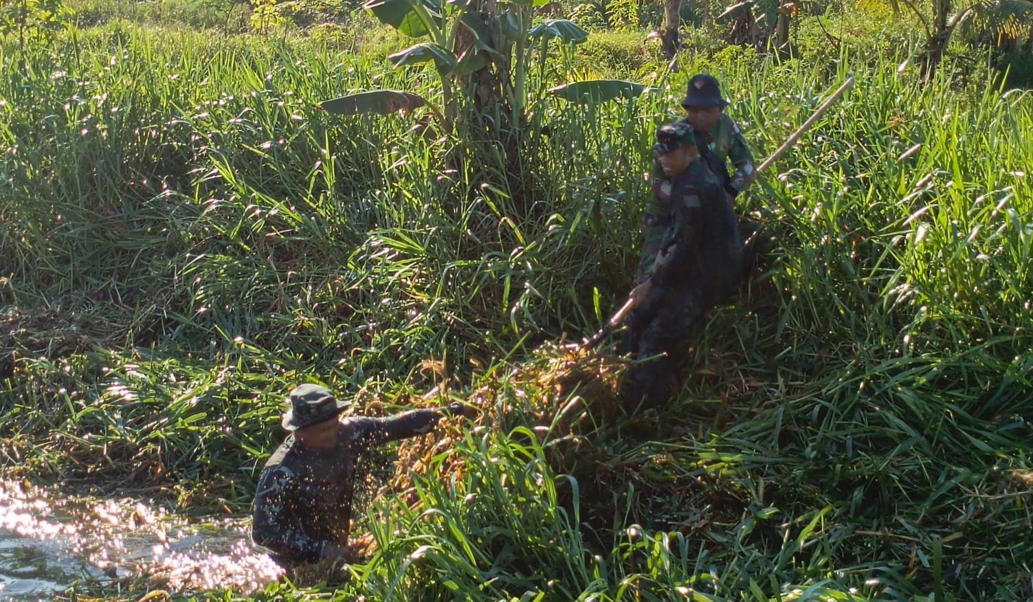Mempawah – Warga Desa Sungai Purun Kecil dibuat kagum sekaligus terharu melihat aksi prajurit TMMD ke-124 yang rela nyemplung ke sungai demi membersihkan gulma yang selama ini jadi masalah bagi warga.