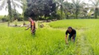 Babinsa Koramil 09/Samatiga Bersama Pok Tani Laksanakan Penyemprotan dan Pemeliharaan Padi