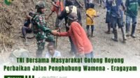 TNI Bersama Masyarakat Gotong Royong Perbaikan Jalan Penghubung Wamena – Eragayam