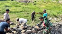 Sinergitas TNI dan Warga Tampak Erat dalam Pembangunan Tanggul Cor