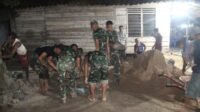 Gotong royong Satgas TMMD dan warga cetak batako untuk RTLH di Kampung Moris Jaya
