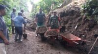 Gotong Royong Babinsa dan Warga Desa Jegu Bersihkan Tanah Longsor