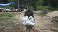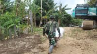 Warga Desa Talio Pikul Material, Bantu Satgas TMMD Bangun Jalan Desa