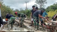 Gotong Royong TNI dan Warga Desa Talio Percepat Pengecoran Jalan