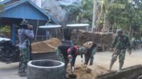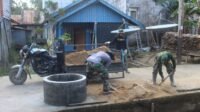 Satgas Lakukan Pencampuran Material untuk Pengecoran Jalan di Desa Talio