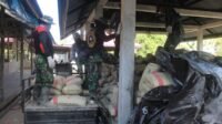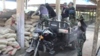 Satgas Angkut Material Semen untuk Pengecoran Jalan Desa Talio