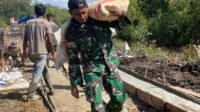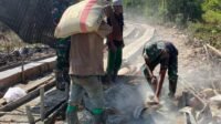 Semangat Satgas dan Warga Angkut Semen untuk Pengecoran Jalan di Desa Talio
