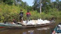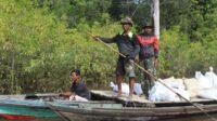Material Pembangunan Jalan Desa Talio Diangkut Menggunakan Klotok