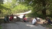 Babinsa Koramil 1621-03/Mollo Utara Sertu Ike Arkian Laksanakan Gotong Royong, Perbaiki Jalan Yang Rusak Di Desa Salbait