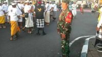 Ciptakan Rasa Aman dan Nyaman, Babinsa Desa Wanasari Kawal Upacara Adat Melasti Menuju Pantai Tanah Lot