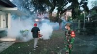 Gelar Fogging, Babinsa Semarapura Klod Gandeng Puskesmas Klungkung I