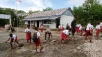 Siswa SDN Lanaus Bantu Satgas TMMD, Bukti Kepedulian Sejak Dini.